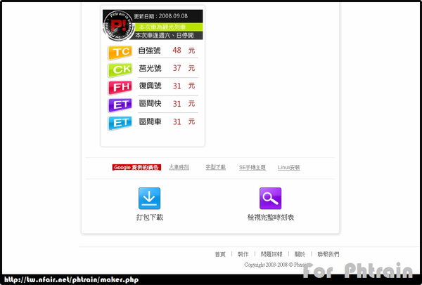 在這之餘"Phtrain"的出現真的帶來便利(感謝Mace提供),http://tw.nfair.net/phtrain/about.php這網站提供"高鐵&台鐵"的時刻表