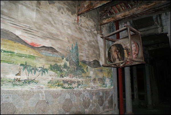 正廳右邊,居然有火車過山洞的彩色壁畫,主管單位屏東縣文化局的人邊搖頭邊笑說,那是後來,在這裡經營幼稚園時留下的痕跡。